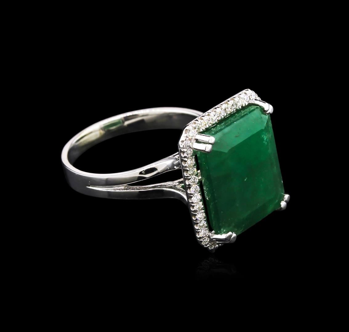 One 14KT white gold ring weighing 3.71 grams containing: 1 center emerald cut natural emerald with a total approximate weight of 7.82ct and round cut diamonds with a total approximate weight of 0.24ct. Diamonds: All VS-SI clarity; G-H color. Fine cutting/proportions. RBGS Appraised at $5,000.00.
