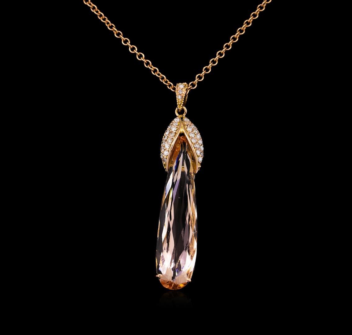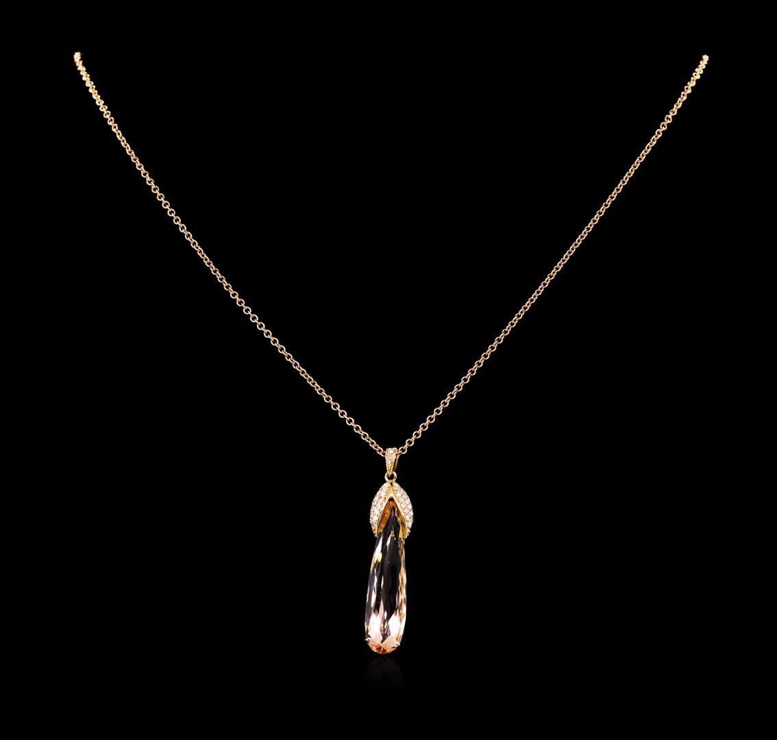 One pendant featuring: 14KT rose gold weighing 2.86 grams containing one morganite with a total weight of 7.88ct and side diamonds with a total weight of 0.25ct.