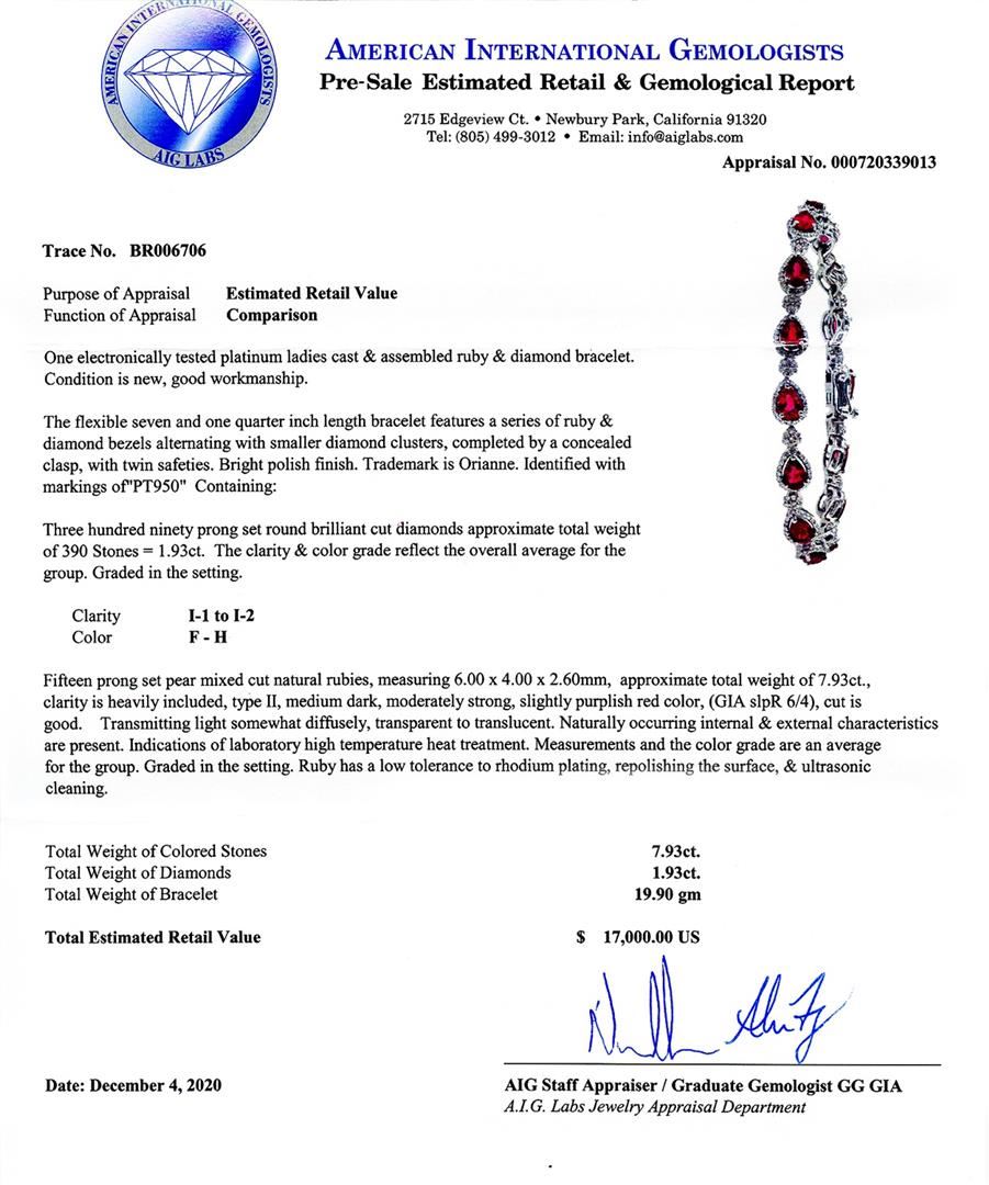 7.93 ctw Ruby and 1.93 ctw Diamond Platinum Bracelet