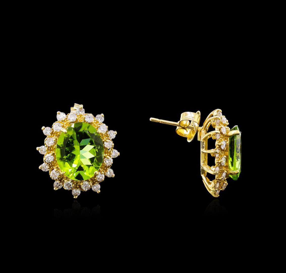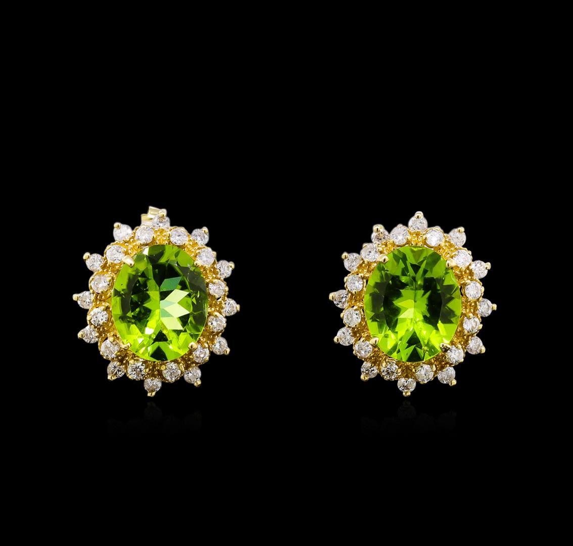 8.00 ctw Peridot and Diamond Earrings - 14KT Yellow Gold