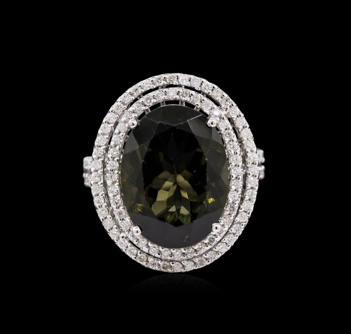 One ring featuring: 14KT white gold weighing 7.46 grams containing one green tourmaline with a total weight of 8.15ct and diamonds with a total weight of 0.72ct.