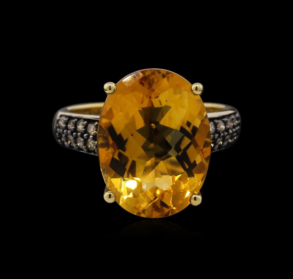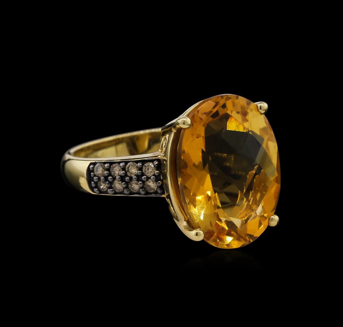 One ring featuring: 14KT yellow gold weighing 6.30 grams containing one citrine center stone with a total weight of 8.17ct and brown diamonds with a total weight of 0.24ct.