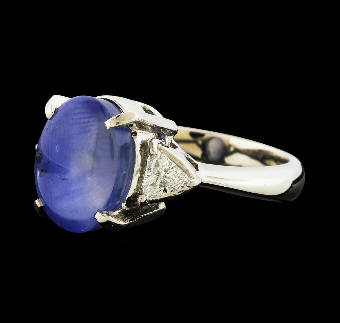 One ring featuring: Platinum containing Star Sapphire with a total weight of 8.18ct and Diamonds with a total weight of 0.38ct. Total Weight of Ring: 11.5 grams.