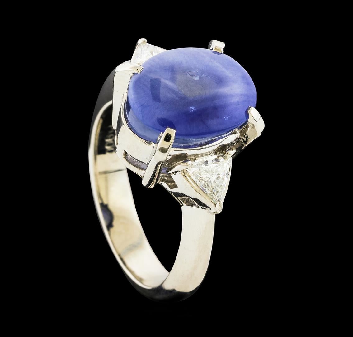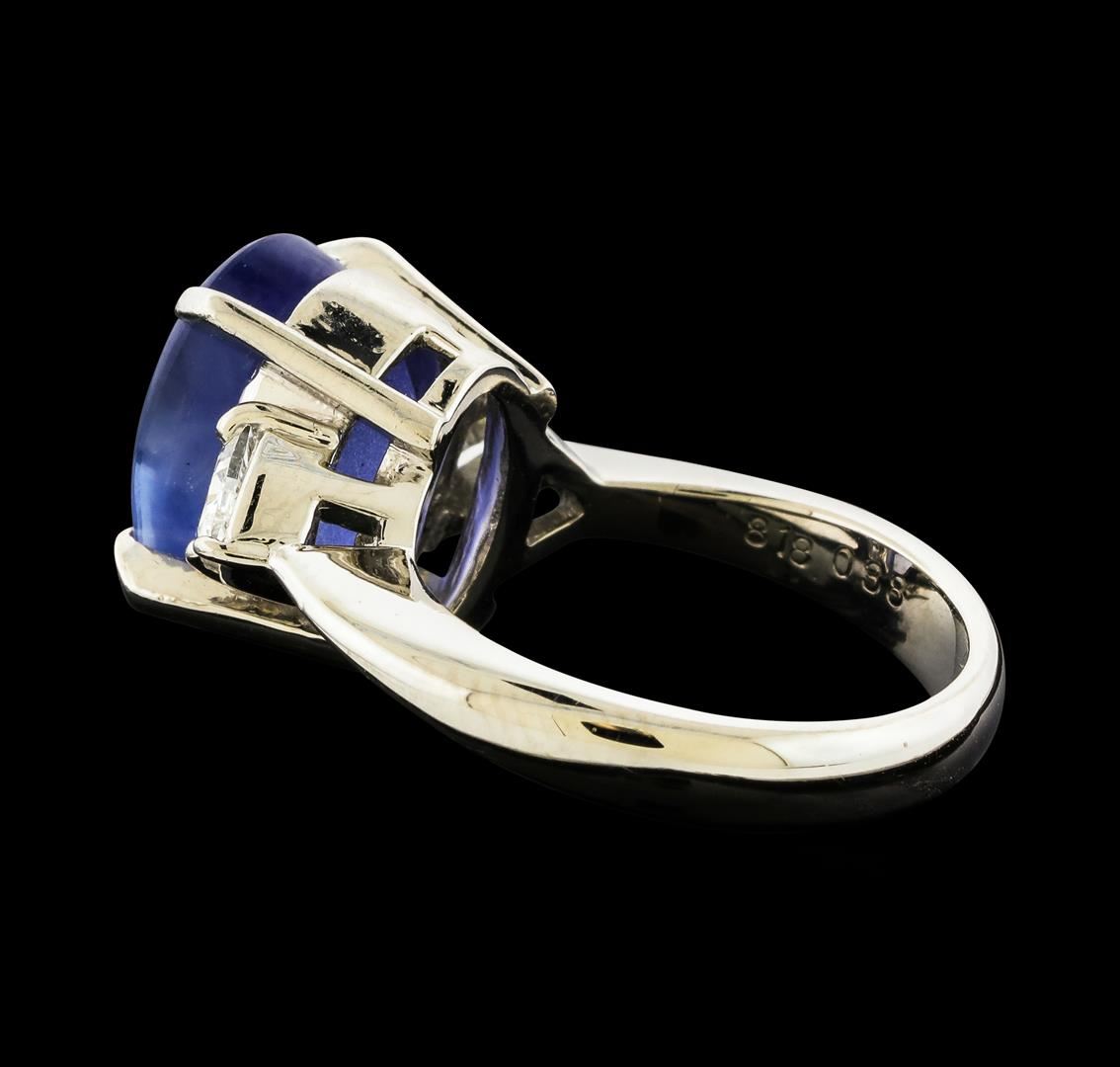 One ring featuring: Platinum containing Star Sapphire with a total weight of 8.18ct and Diamonds with a total weight of 0.38ct. Total Weight of Ring: 11.5 grams.