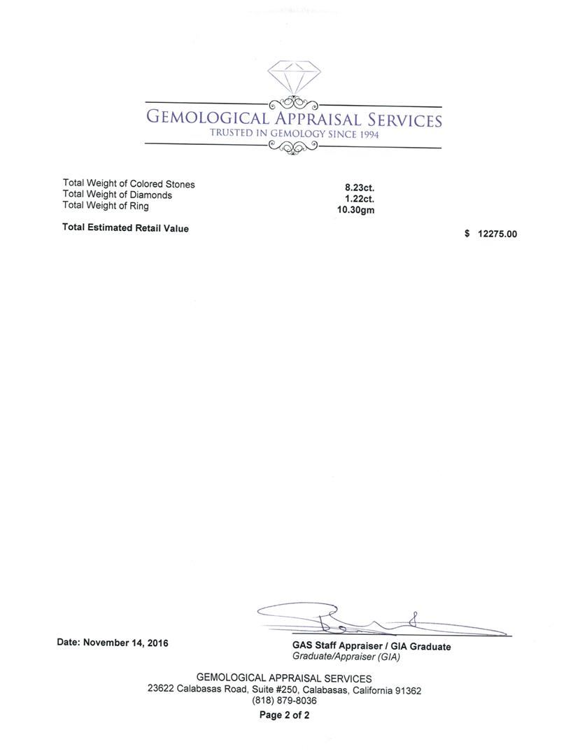 Not all Jewelry, watches or loose stones are appraised and the appraisals are provided for bidders only in certain instances at the discretion of SAA. Our appraisals are conducted by independent third-party appraisal firms. Such firms may be certified GIA Gemologists or have education in the industry or alternative certifications. Appraisals should be used for verification of gemstone and/or metal weight, size, and grade only, not actual value for resale or insurance purposes. Appraisal value should be not considered for actual value, as price varies greatly from retail locations and other merchants in different geographic locations. All Items auctioned by SAA should not be purchased with a view or expectation toward resale for appraisal price given, or to make a profit. The ultimate value for which an item can be resold may vary drastically from the appraisals listed by SAA.