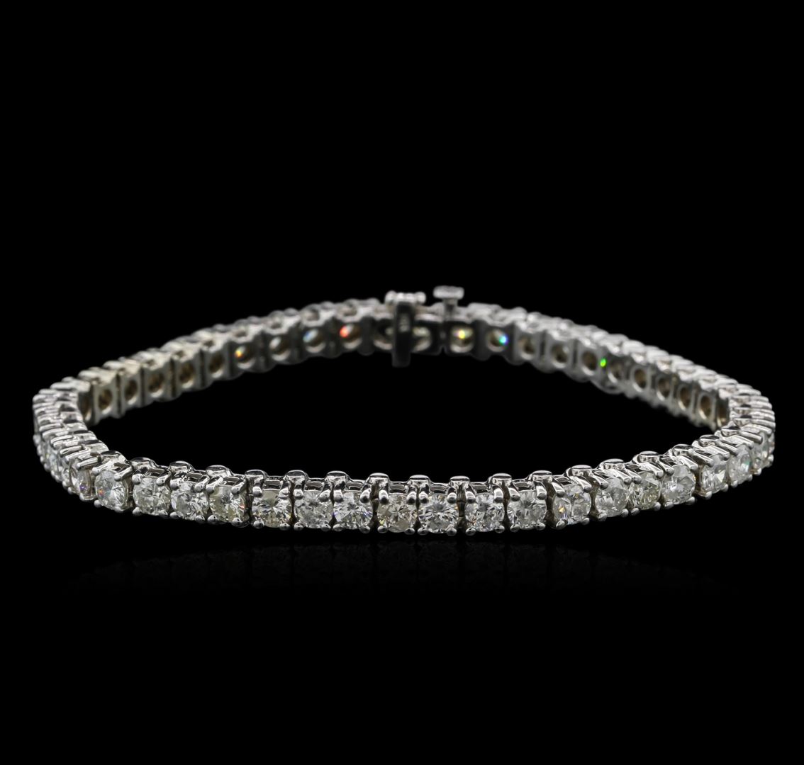 One electronically tested 14KT white gold ladies cast & assembled diamond tennis bracelet with a bright polish finish. Seven inch length bracelet composed of a flexible ribbon of diamonds, terminating in a concealed clasp with safety. Identified with markings of "14K". Condition is new, good workmanship. TENNIS. Containing: Forty-nine prong set round brilliant cut diamonds, measuring 3.60 - 3.50 x 2.13mm (depth est.) approximate total weight of 49 Stones = 8.30ct. Graded in the setting. Clarity: SI-2 to I-2. Color: H-J. Total Weight of Diamonds: 8.30ct. Total Weight of Tennis Bracelet: 20.40 grams. AIG Appraised at $25,830.00.