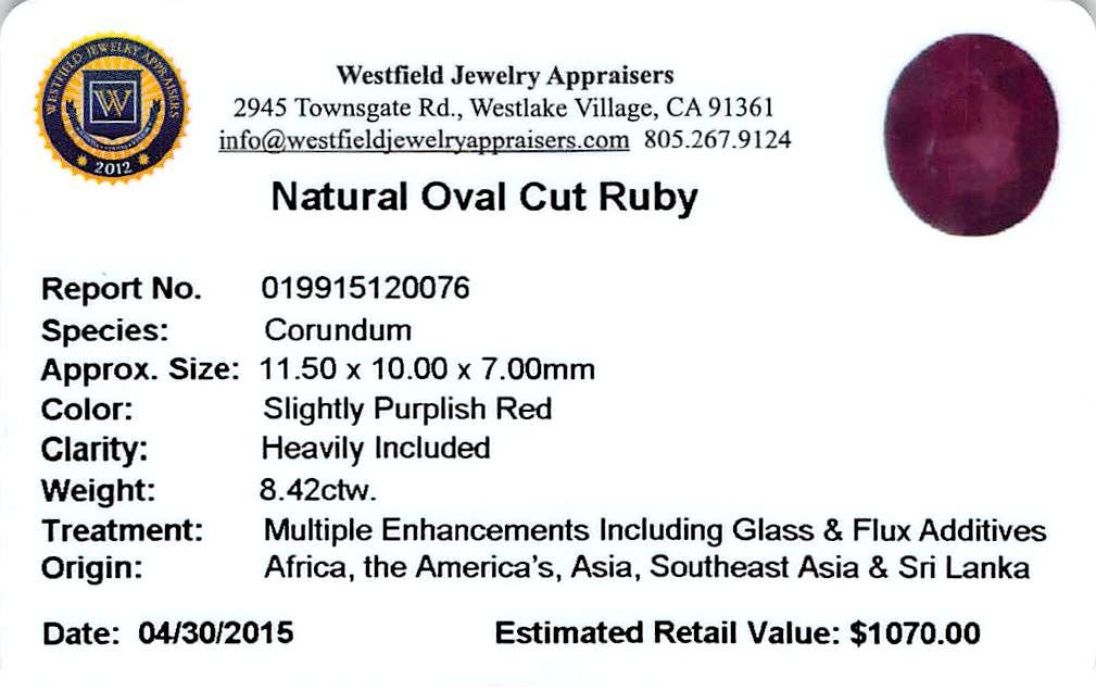 One 8.42 ctw Oval Ruby Parcel.