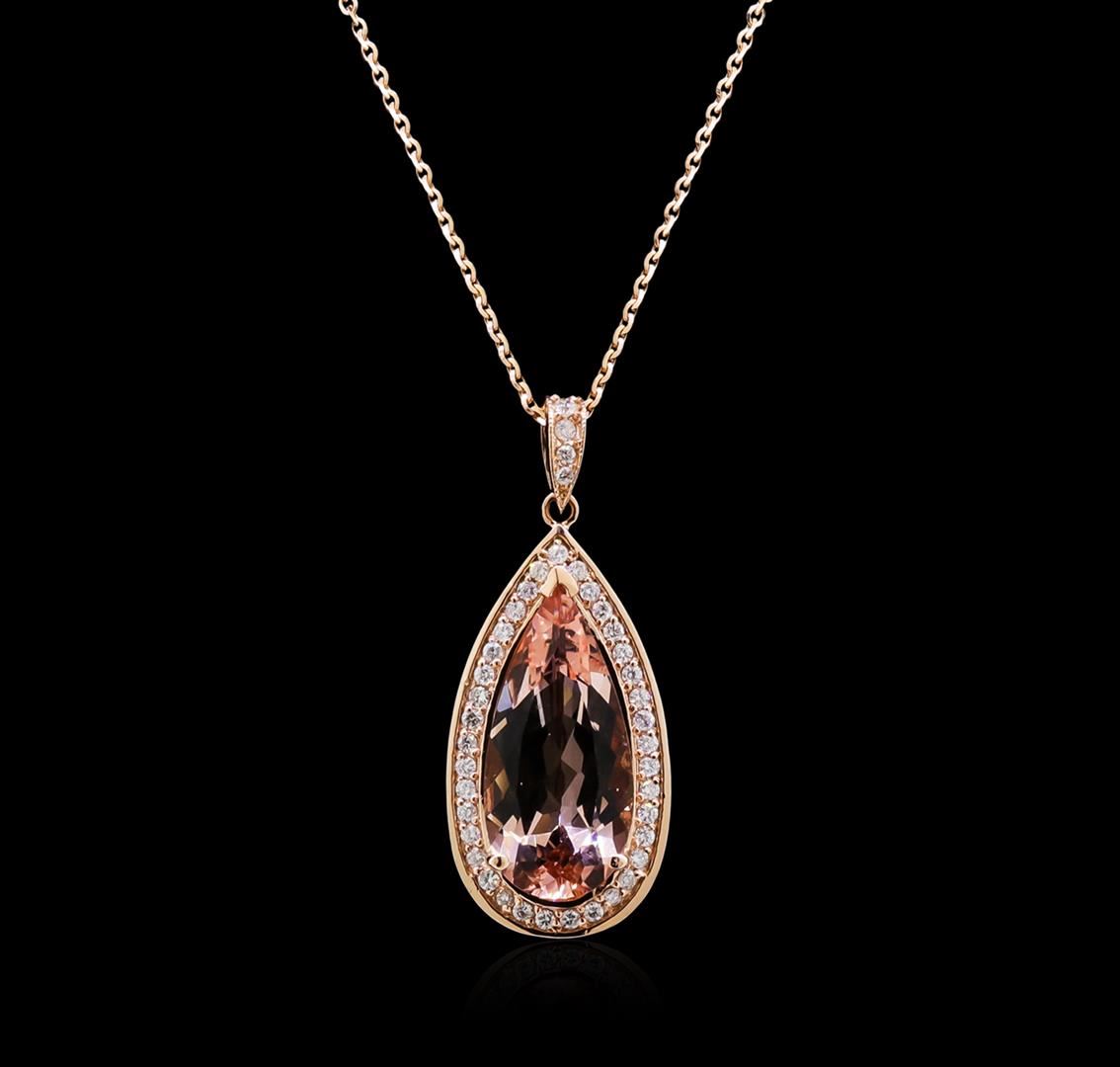 One pendant featuring: 14KT white gold weighing 5.25 grams containing one morganite with a total weight of 8.52ct and diamonds with a total weight of 0.81ct.