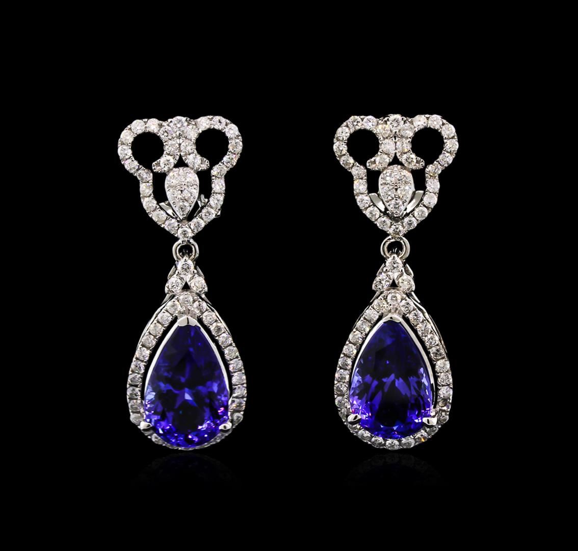 One pair of earrings featuring: 14KT white gold weighing 6.25 grams containing two tanzanites with a total weight of 8.65ct and diamonds with a total weight of 1.27ct.