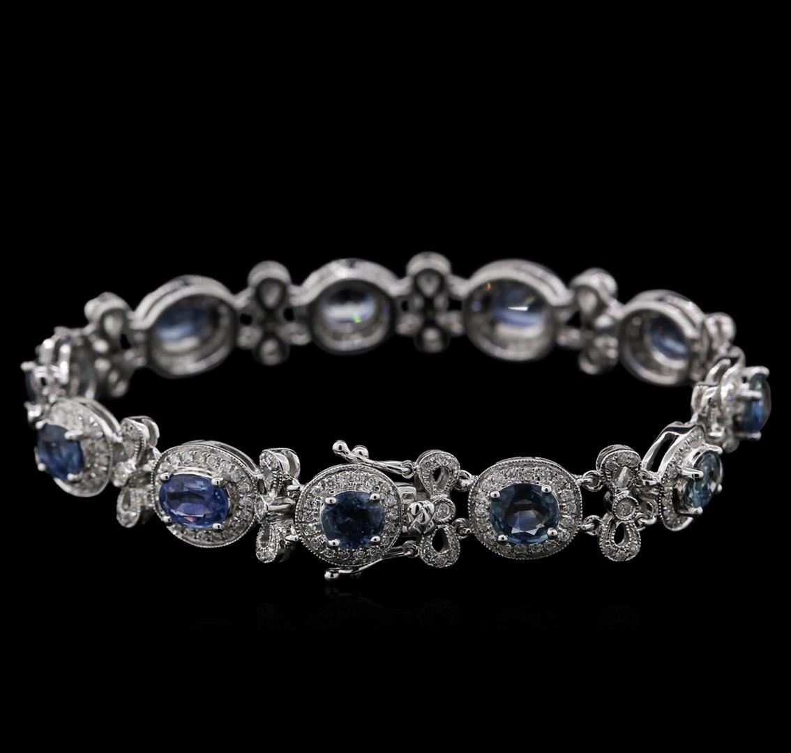 One bracelet featuring: 14KT white gold weighing 19.50 grams containing 11 blue sapphires with a total weight of 8.71ct and diamonds with a total weight of 1.60ct.