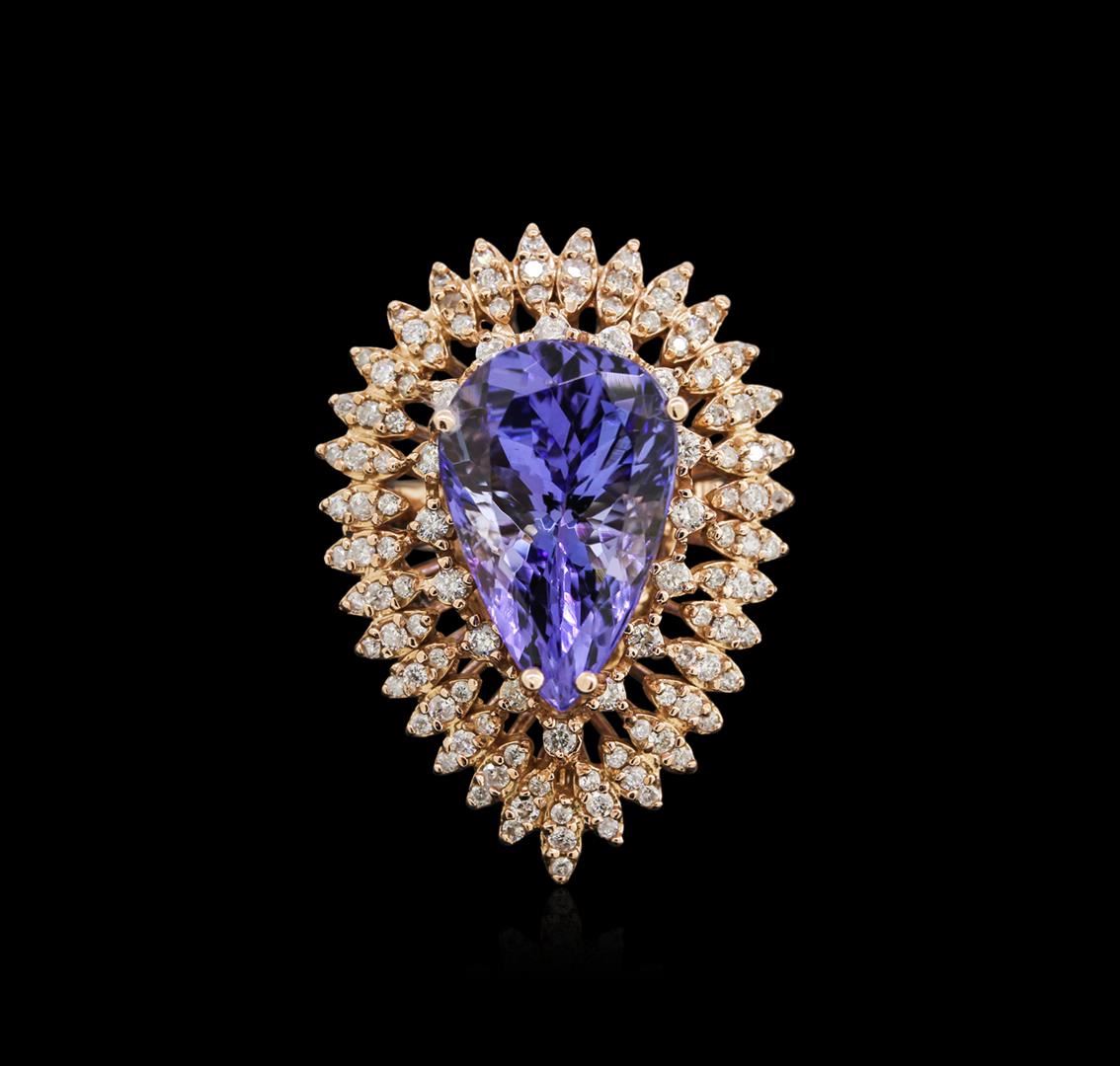 8.88 ctw Tanzanite and Diamond Ring - 14KT Rose Gold