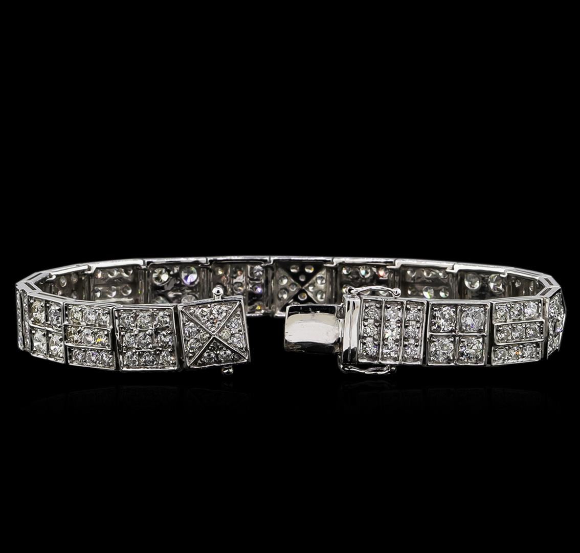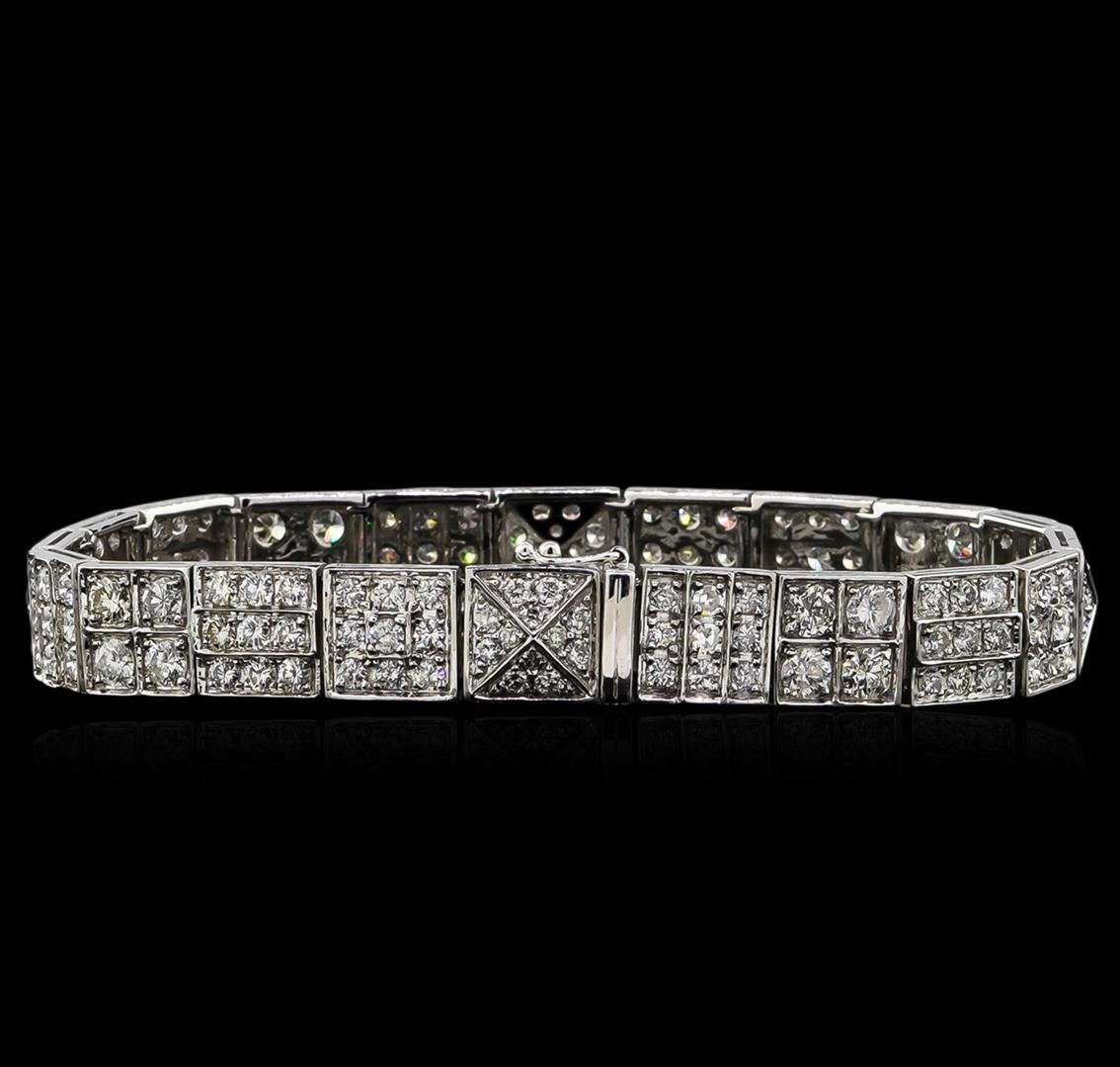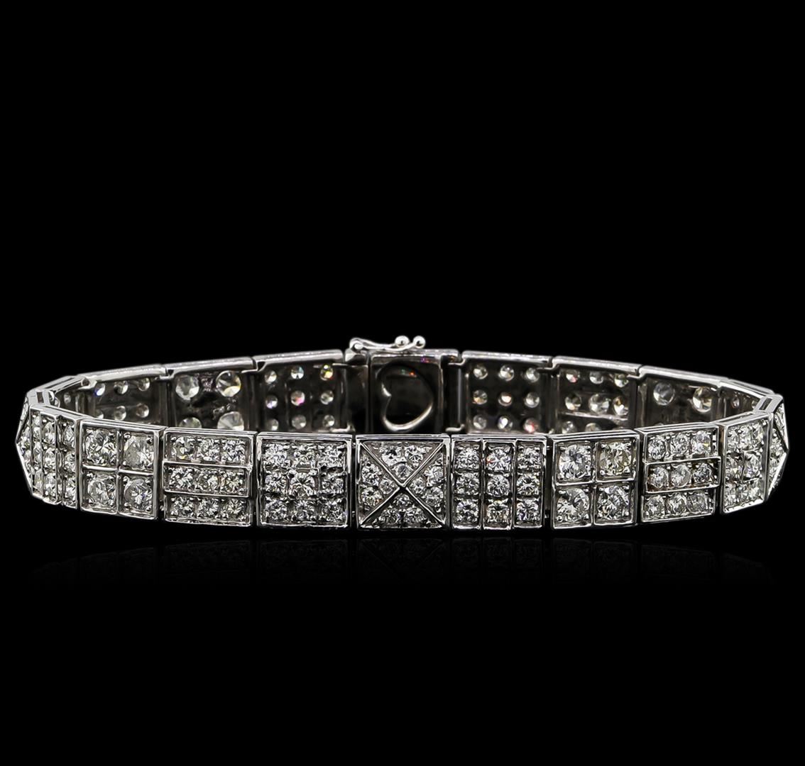 One electronically tested 18KT white gold ladies cast & assembled diamond bracelet. Seven and three-quarter inch length bracelet features square links set with varying size diamonds, terminating in a concealed clasp with twin safeties. Bright polish finish. Trademark is MICHA. Identified with markings of "18K 750". Condition is new, good workmanship. Containing: Sixteen prong set round brilliant cut diamonds, measuring 3.60 - 3.40 x 2.10mm (depth est.) approximate total weight of 16 Stones = 2.51ct. Graded in the setting. Clarity: SI-2 to I-2. Color: G - I One Hundred Forty prong set round brilliant and single cut diamonds, measuring 2.90 x 2.00 x 1.38mm (depth est.) approximate total weight of 140 Stones = 6.23ct. Graded in the setting. Clarity: SI-2 to I-2. Color: G - I Sixteen prong set round brilliant and single cut diamonds, measuring 1.50 x 1.50 x 0.90mm (depth est.) approximate total weight of 16 Stones = 0.20ct. Graded in the setting. Clarity: SI-2 to I-2. Color: G - I. Total Weight of Diamonds 8.94ct. Total Weight of Bracelet 30.49gm. AIG Appraised at $28,300.00.