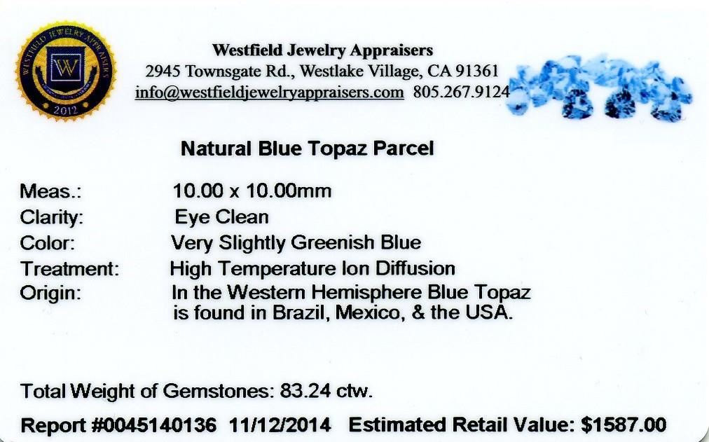 83.24cts Trillion Cut Natural Blue Topaz Parcel. Westfield Appraised at $1,587.00.
