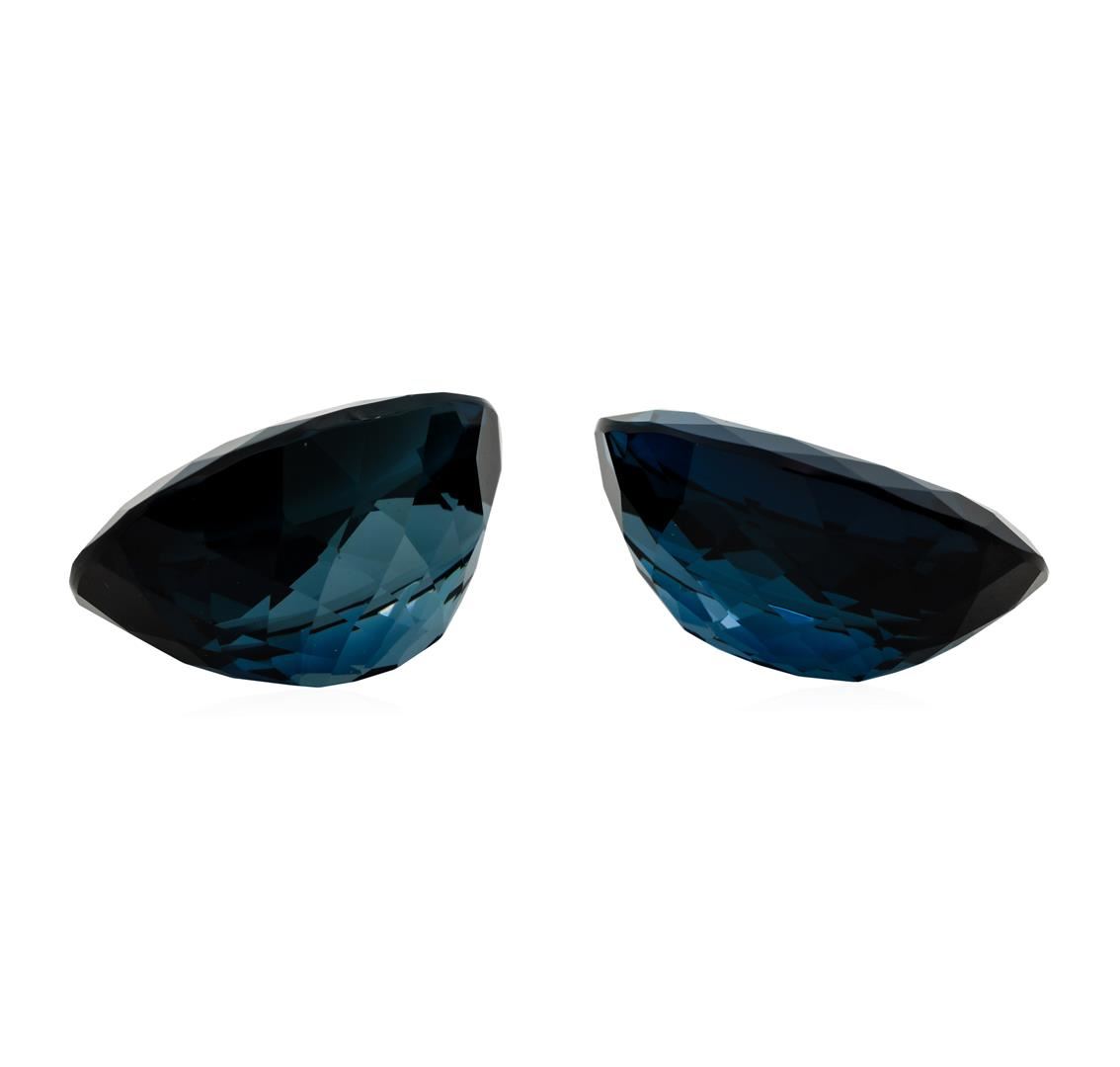 One natural oval cut london blue topaz parcel of two with an exact weight of 84.00 ctw., clarity is eye clean, greenish blue, dark to medium dark. Gemological Appraisals Services estimates the retail value at $1680 GAS Appraised.