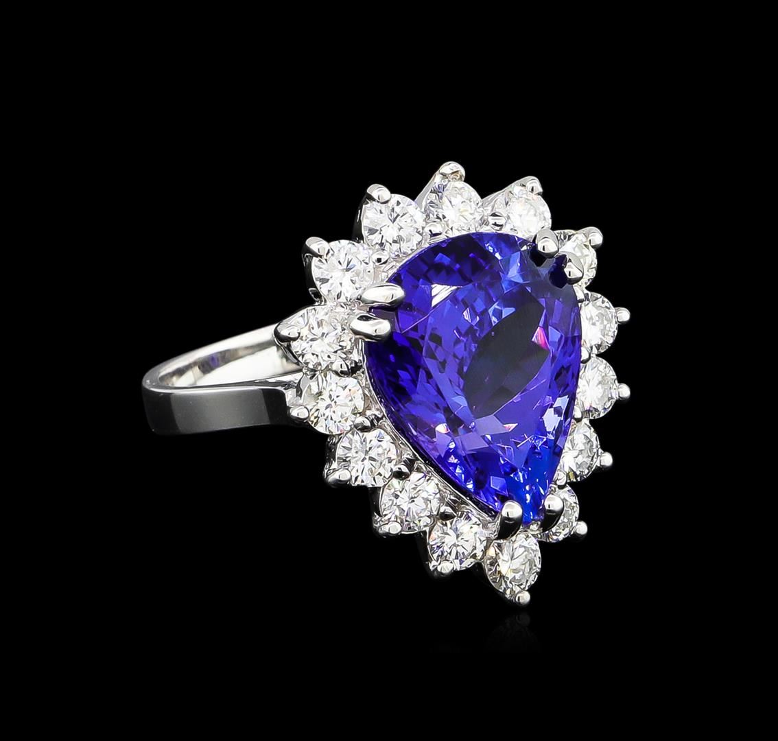 18K White Gold 9.00CT Tanzanite 1.35CT Diamond Ring. Description: Metal: 18k solid white gold. Face Measurements: 17 x 20mm. Size: 7. Shank Width: 2mm. Finish: bright polish. Total Item Weight: 8.0 grams. Markings: stamped 18K. Country Made: USA. Main Stone: tanzanite. Quantity: 1. Shape: pear. Color: blue. Carat Total Weight: 9.00. Measurements: 11 x 15mm. Treatment: heating. Setting: prong. Hue: blue. Saturation: moderately strong. Tone: light medium. Clarity: type 2. Cut: very good. Secondary Stone: diamond. Quantity: 15. Shape: round. Color: white. Carat Total Weight: 1.35. Measurements: 2.5mm. Treatment: none. Setting: prong. Color Grade: G-H. Clarity: SI1-SI2. Cut: very good. Excellent Workmanship. Gemstones graded in the mounting. BHGL Appraised at $38,790.00.
