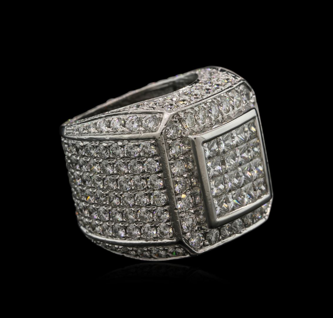 One electronically tested 14KT white gold ladies cast diamond ring with a bright polish finish. Condition is new. Containing: Two Hundred Sixteen prong set round brilliant cut diamonds, measuring 2.50 - 1.30 x 1.14mm (depth est.) approximate total weight of 216 Stones = 5.98ct. Clarity: VS-2 to SI-1. Color: G - H, Cut is Good. Sixteen invisible set princess cut diamonds, measuring 2.80 x 2.80 x 2.10mm (depth est.) approximate total weight of 16 Stones = 3.02ct. Clarity: VS-1. Color: G - H, Cut is Very Good. Diamonds are graded in the mounting, unless otherwise stated. Total Weight of Diamonds 9.00ct. Total Weight of Ring 25.70 grams. GGL Appraised at $18,920.00.