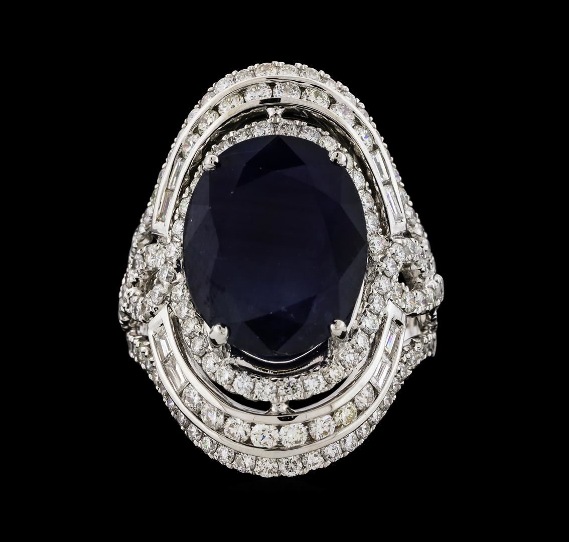 One 14KT White Gold Lady's Ring. Natural Burma Color Sapphire. No Heat. Containing: Gold & Weight: 14KT White Gold, 14.90 grams. Main Gemstones: Identity: Natural Sapphire. Carat Weight: 9.07 cts tw. Shape & Measurement: Oval Shape. Quality: Natural Sapphire. Burma Color. No Heat. Adjacent Gemstones: Identity: Natural Diamond. Shape: Round Brilliant Cut & Baguette Cut. Carat Weight: 2.50 cts tw. Quality: VS Clarity, E-F Color. All fine cutting and proportions. Total gemstones weight: 11.57 cts tw. RBGS Appraised at $20,000.00.