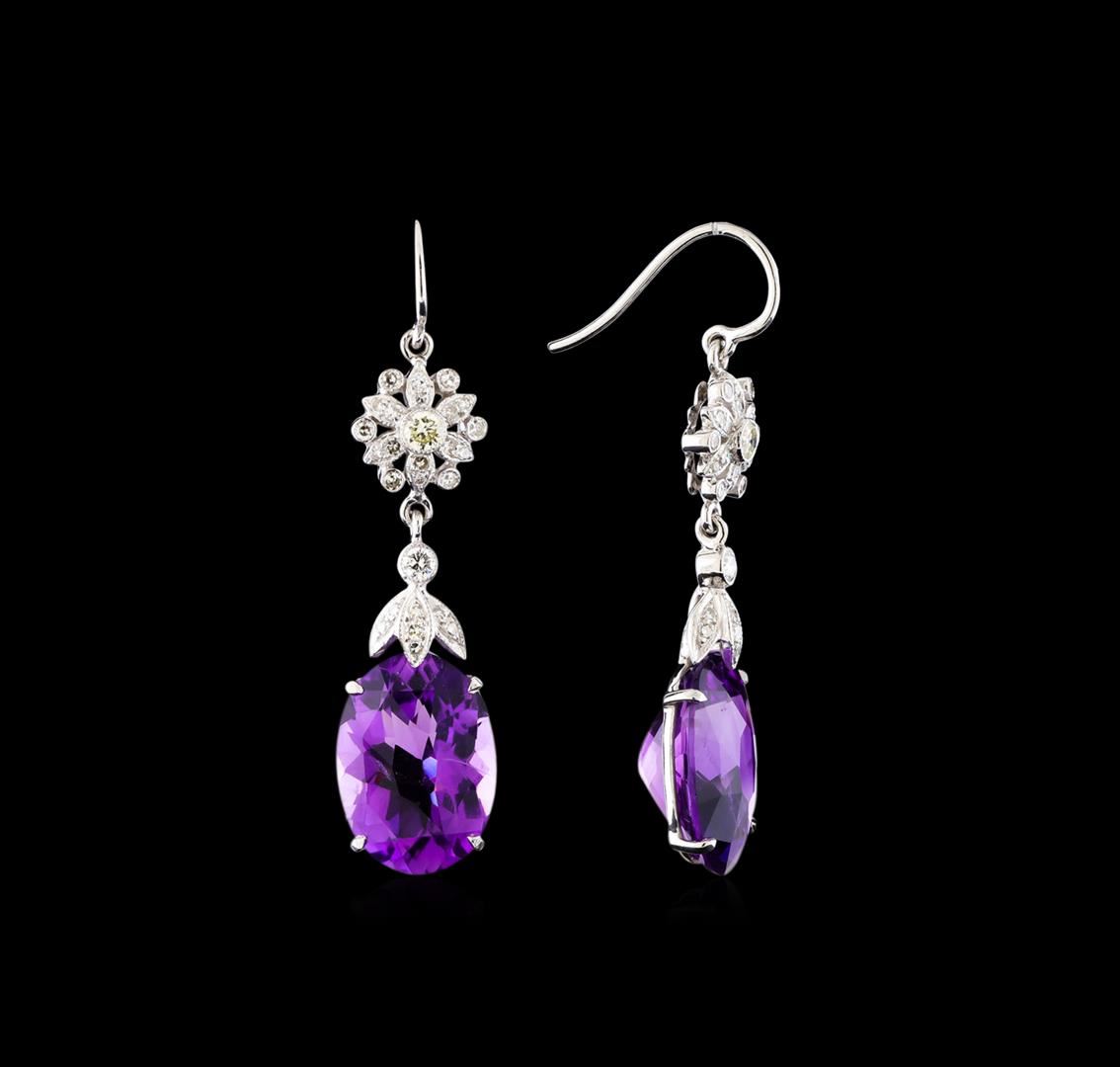 One pair of earrings featuring: 14KT white gold weighing 4.51 grams containing two amethysts weighing 9.17ctw and diamonds weighing 0.40ctw.