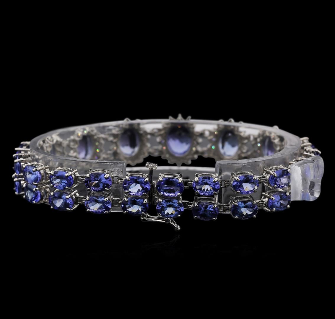 One bracelet featuring: 14KT white gold weighing 29.50 grams containing 31 tanzanites with a total weight of 29.40ct and diamonds with a total weight of 2.60ct.