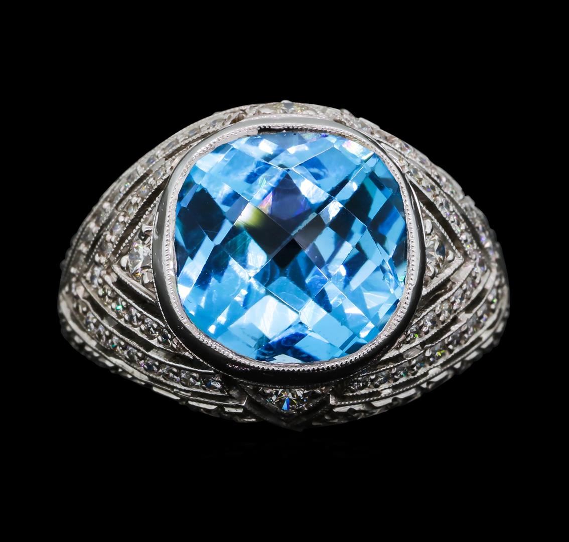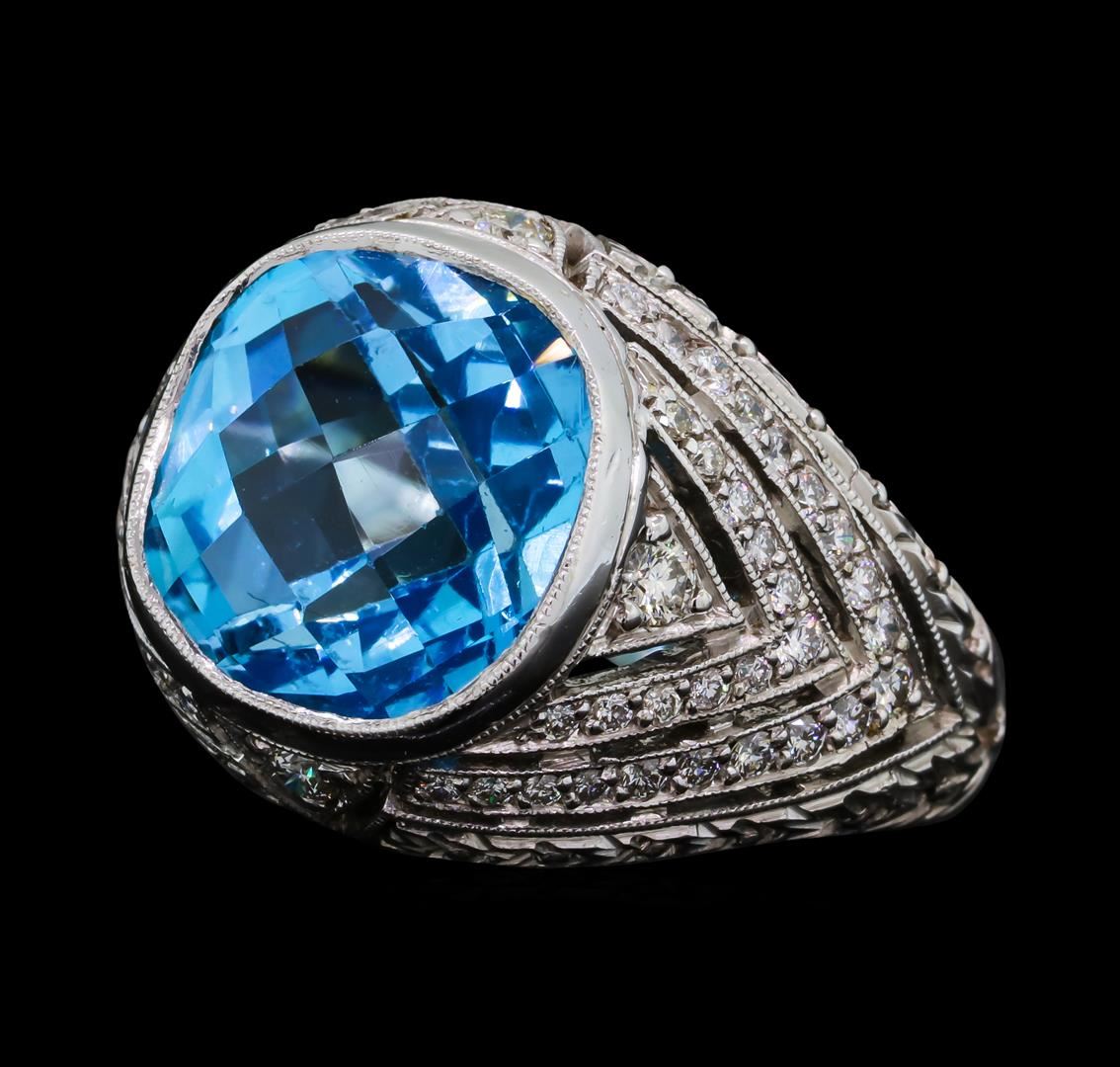 One ring featuring: 18KT white gold weighing 6.4 grams containing one blue topaz weighing 9.50ct and diamonds weighing 0.63ctw.