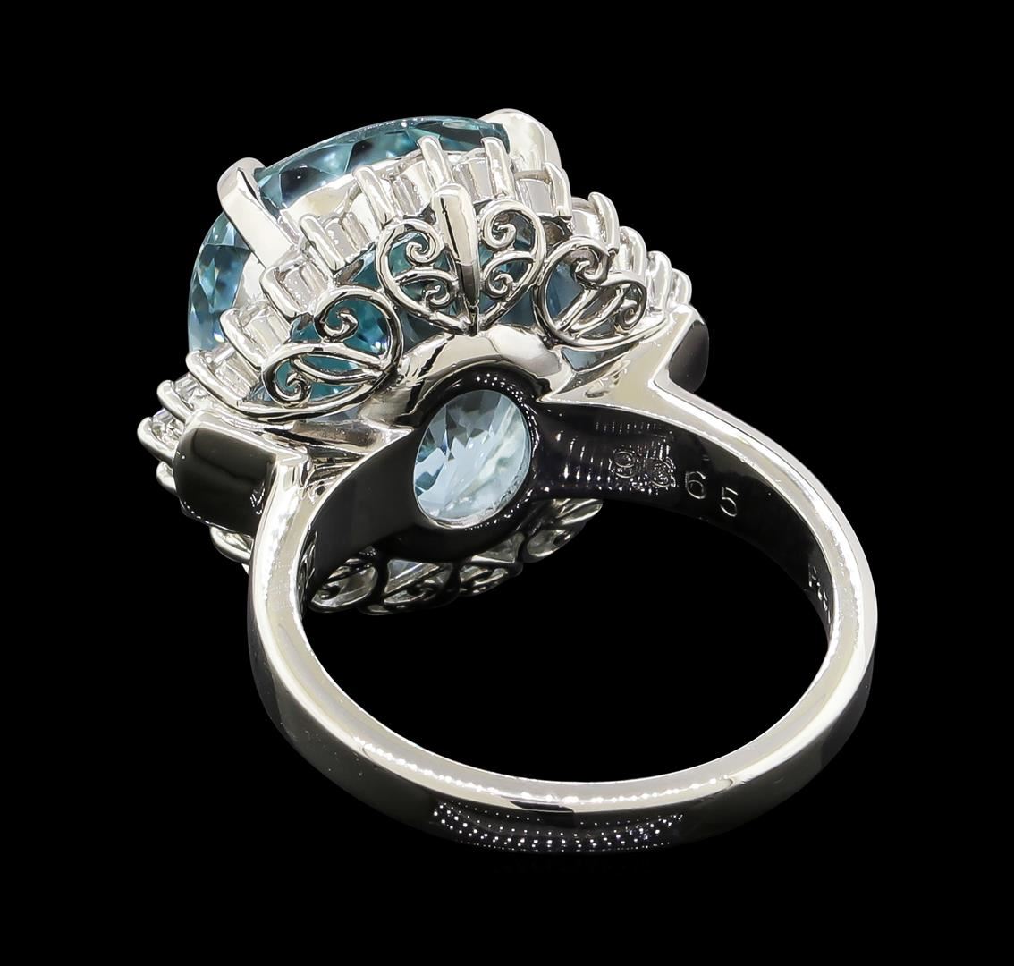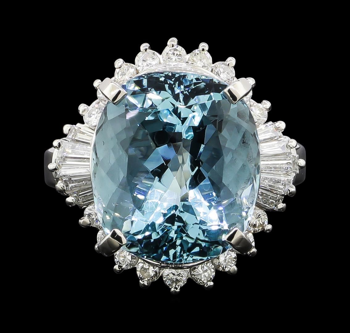 One ring featuring: Platinum containing Aquamarine with a total weight of 9.66ct and Diamonds with a total weight of 0.79ct. Total Weight of Ring: 13.3 grams.