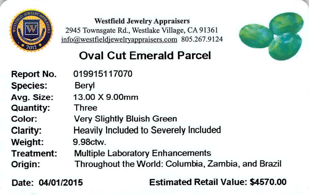 One 9.98 ctw Oval Mixed Emerald Parcel.