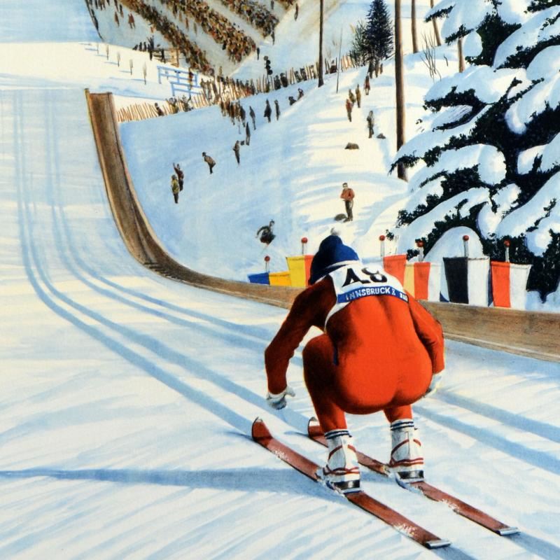 "90-Meter Ski Jump" is a limited edition serigraph on paper by William Nelson, numbered and hand signed by the artist! Measures approx. 22" x 29" (with border); 19" x 26" (image).