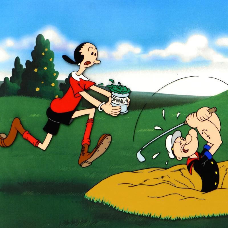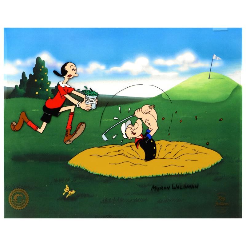 "A Day At The Links" is a limited edition hand inked and hand painted animation cel with background, numbered and hand signed by Myron Waldman (1908-2006). Includes Certificate of Authenticity! Measures approx. 14" x 12" (background), 11" x 8" (cel).