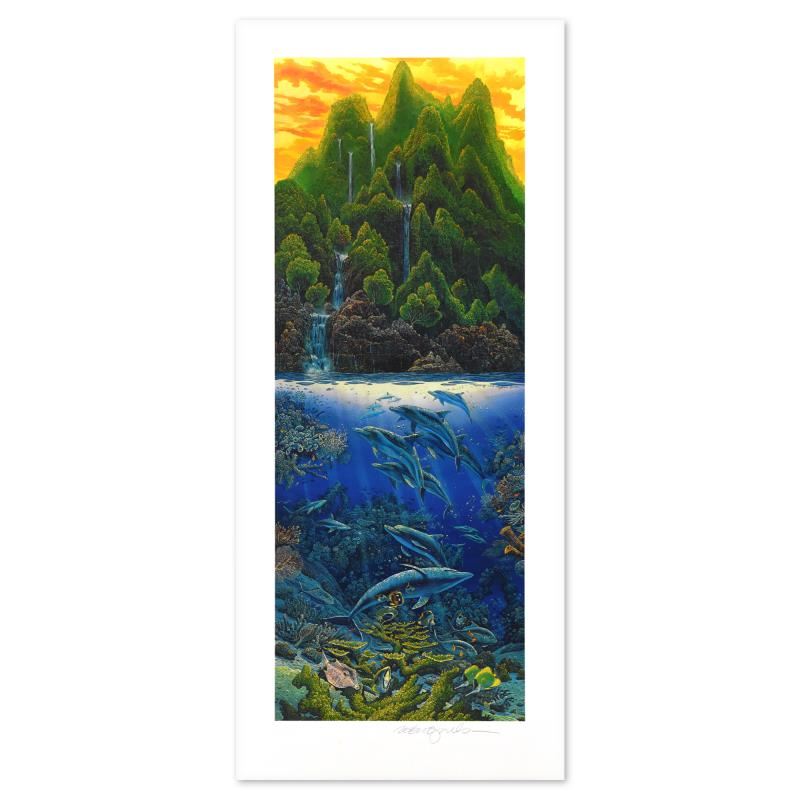 "A New Consciousness" is a limited edition mixed media on paper by Robert Lyn Nelson, numbered and hand signed by the artist. Includes Letter of Authenticity. Measures approx. 16.5" x 39.5" (with border), 12.5" x 34.5" (image).