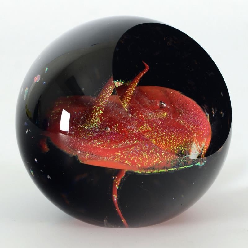 A Star is Born (Paperweight) by Glass Eye Studio. "A Star is Born" is a hand blown glass paperweight (second) from Glass Eye Studios. This piece contains ash from the 1980 volcanic eruption of Mount St. Helens. As each piece is individually handcrafted, the pattern in the glass may vary slightly from the image shown. "Second" means very slightly imperfect, but still great quality. Measures approx. 3" x 3" x 3".