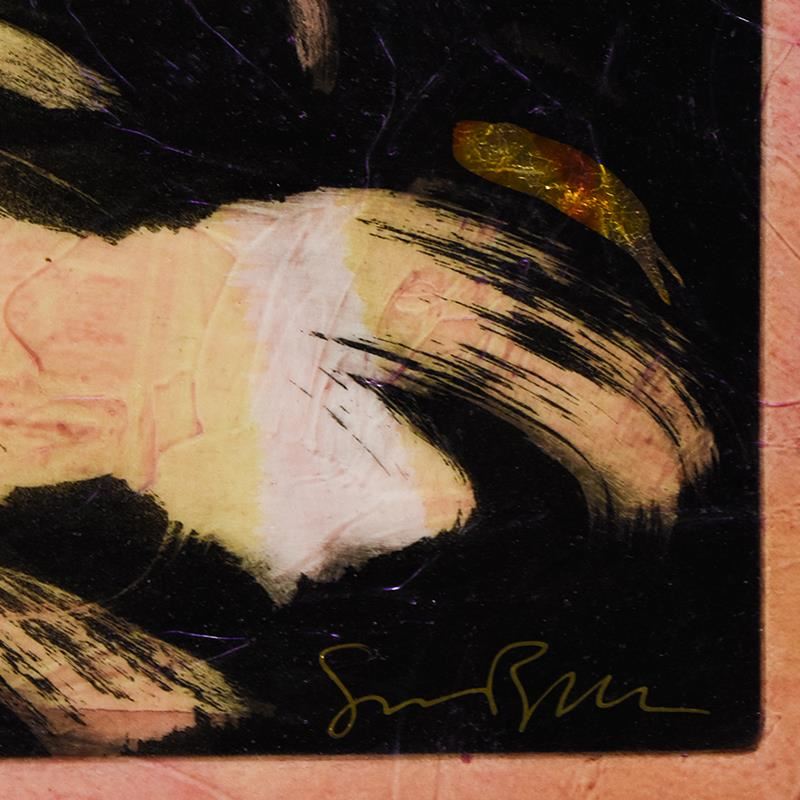 "A Thousand Dreams" is a limited edition etching on Sommerset rag paper by Simon Bull numbered and hand signed by the artist. This etching is hand painted with acrylic and gold foils and then painted over with thickly with acrylic gel and finished with with a glaze of interference violet acrylic. Given that the piece is hand painted each piece may vary slightly. Includes Letter of Authenticity. Measures approx. 30" x 22" (border) 25" x 12" (image).