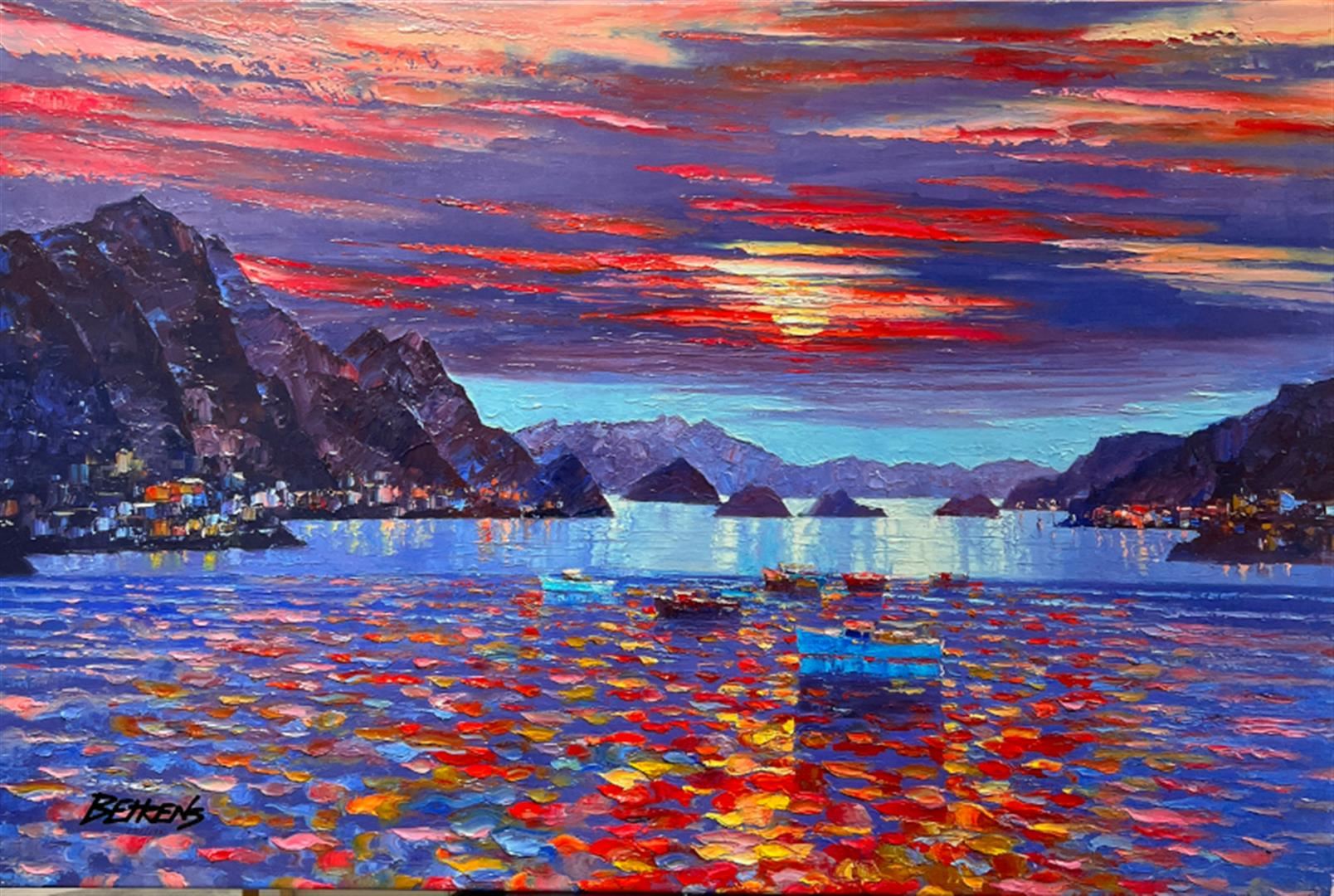 AMALFI SUNSET by Behrens, Howard. Limited Hand Signed Heavily Embellished Stretched. Dimensions: 24 x 36. Excellent Condition.