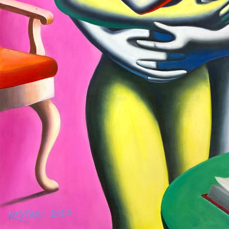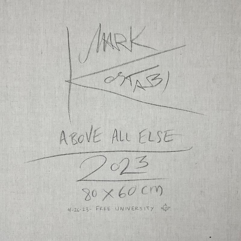Above All Else is an original painting on canvas by Mark Kostabi, hand signed by the artist. This piece comes custom framed. Includes Certificate of Authenticity. Measures approx. 26.5 x 34 (frame), 24 x 32 (image).