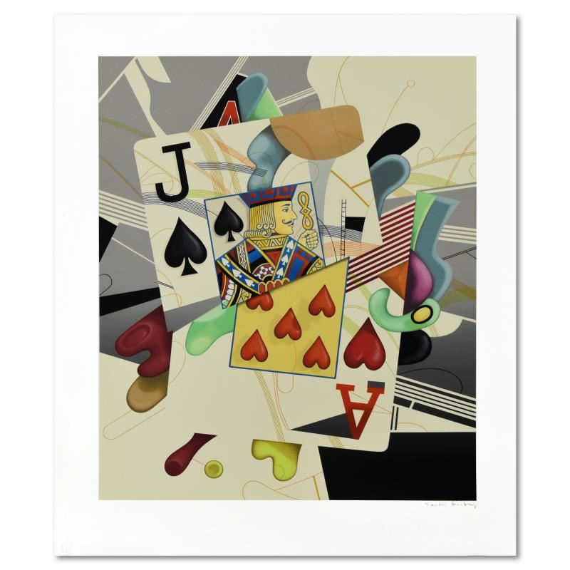 Ace/Jack (Blackjack) by Ginzburg, Yankel. "Ace/Jack (Blackjack)" is a limited edition serigraph on paper by Yankel Ginzburg, numbered and hand signed by the artist. Includes Letter of Authenticity. Measures approx. 28.5" x 35" (border), 24" x 29" (image).