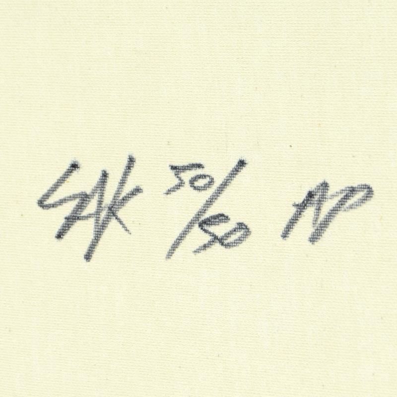 "Actress" is a hand pulled limited edition silkscreen on canvas by Andy Warhol protege Steve Kaufman (1960-2010). This piece is TP numbered 50/50 and hand signed inverso. Includes letter of authenticity. As is common with Kaufman's works, this piece may have perceived minor flaws, but is in overall good condition. Measures approx. 46" x 24" (image). Please note: there are minor creases in the canvas that will likely be concealed when the piece is stretched.