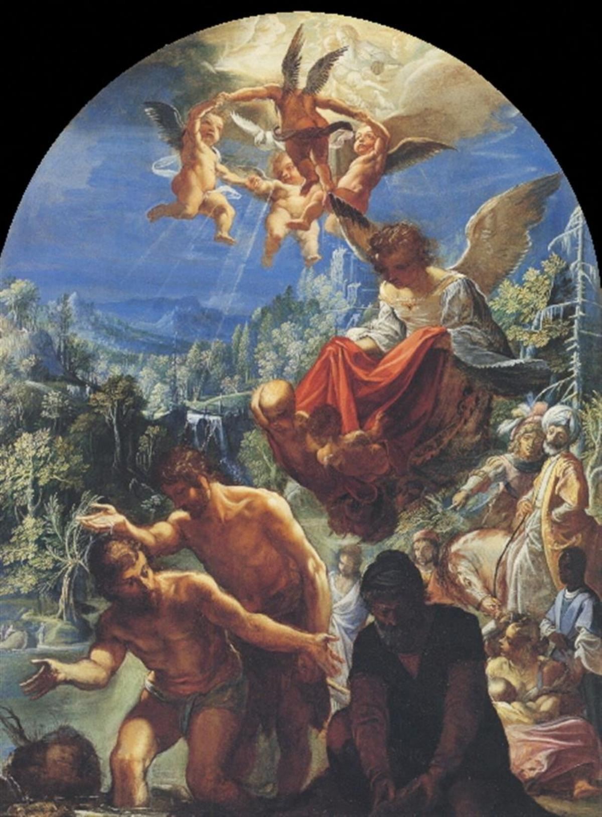 Artist: Adam Elsheimer - Title: The Baptism of Christ - Medium: Fine Art Giclee on Canvas - Image Size: Approximately 32 inches x 24 inches - Unframed on Unstretched Canvas - Biography: Adam Elsheimer (18 March 1578 - 11 December 1610) was a German artist working in Rome, who died at only thirty-two, but was very influential in the early 17th century in the field of Baroque paintings. His relatively few paintings were small scale, nearly all painted on copper plates, of the type often known as cabinet paintings. They include a variety of light effects, and an innovative treatment of landscape. He was an influence on many other artists, including Rembrandt and Peter Paul Rubens.