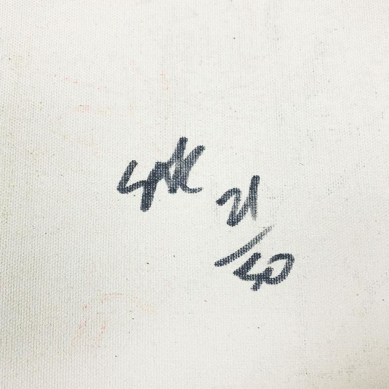 Adam and Eve is a limited edition hand pulled silkscreen mixed media on canvas by Andy Warhol protege Steve Kaufman (1960-2010). This piece is numbered and 21/50 and hand signed inverso. Includes letter of authenticity. As is common with Kaufman's works, this piece may have perceived minor flaws, but is in overall good condition. Measures approximately 17 x 13 (image).