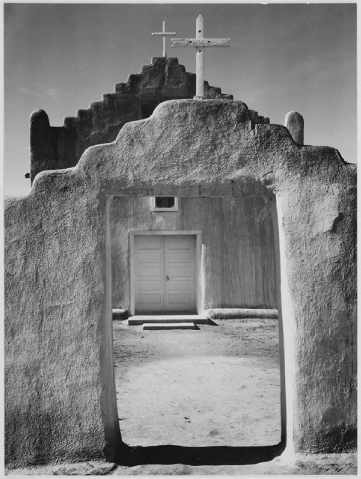 Artist: Ansel Adams - Title: Church in Taos Pueblo New Mexico - Medium: Fine Art Reproduction Giclee on Canvas - Image Size: Approximately 20 inches x 15 inches - Unframed on Unstretched Canvas - Biography: As a conservationist, writer, teacher, and photographer, Ansel Adams has been profoundly influential on future generations of artists, photographers, and environmentalists. There can be little doubt that he produced some of the most iconic images of the great American wilderness. Following in a long tradition of American landscape photographers, including Carleton Watkins, Eadweard Muybridge, Timothy O'Sullivan, and William Henry Jackson, Adams brought landscape photography into the realm of modernism by fusing technical precision with a profound and abiding love of the natural world. His work has inspired a range of artists and photographers working in the landscape tradition, from Eliot Porter and Robert Adams, to Edward Burtynsky and Richard Misrach. The subject of countless documentaries, books, essays, and exhibitions, Adams's images appear on living room and museum walls, proving that his photographs of the great American landscape continue to resonate.