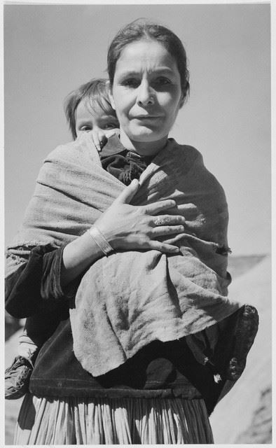 Artist: Ansel Adams - Title: Dinee Woman and Child, Canyon de Chelle, Arizona - Medium: Fine Art Reproduction Giclee on Canvas - Image Size: Approximately 32 inches x 19.5 inches - Unframed on Unstretched Canvas - Biography: As a conservationist, writer, teacher, and photographer, Ansel Adams has been profoundly influential on future generations of artists, photographers, and environmentalists. There can be little doubt that he produced some of the most iconic images of the great American wilderness. Following in a long tradition of American landscape photographers, including Carleton Watkins, Eadweard Muybridge, Timothy O'Sullivan, and William Henry Jackson, Adams brought landscape photography into the realm of modernism by fusing technical precision with a profound and abiding love of the natural world. His work has inspired a range of artists and photographers working in the landscape tradition, from Eliot Porter and Robert Adams, to Edward Burtynsky and Richard Misrach. The subject of countless documentaries, books, essays, and exhibitions, Adams's images appear on living room and museum walls, proving that his photographs of the great American landscape continue to resonate.