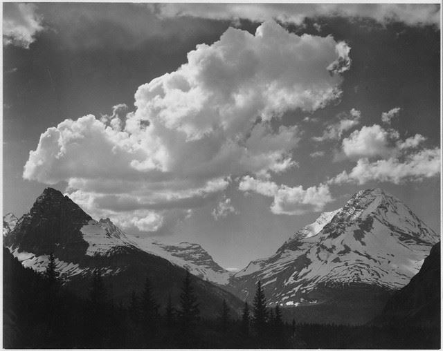 Artist: Ansel Adams - Title: Glacier National Park Montana 6 - Medium: Fine Art Reproduction Giclee on Canvas - Image Size: Approximately 25.25 inches x 32 inches - Unframed on Unstretched Canvas - Biography: As a conservationist, writer, teacher, and photographer, Ansel Adams has been profoundly influential on future generations of artists, photographers, and environmentalists. There can be little doubt that he produced some of the most iconic images of the great American wilderness. Following in a long tradition of American landscape photographers, including Carleton Watkins, Eadweard Muybridge, Timothy O'Sullivan, and William Henry Jackson, Adams brought landscape photography into the realm of modernism by fusing technical precision with a profound and abiding love of the natural world. His work has inspired a range of artists and photographers working in the landscape tradition, from Eliot Porter and Robert Adams, to Edward Burtynsky and Richard Misrach. The subject of countless documentaries, books, essays, and exhibitions, Adams's images appear on living room and museum walls, proving that his photographs of the great American landscape continue to resonate.