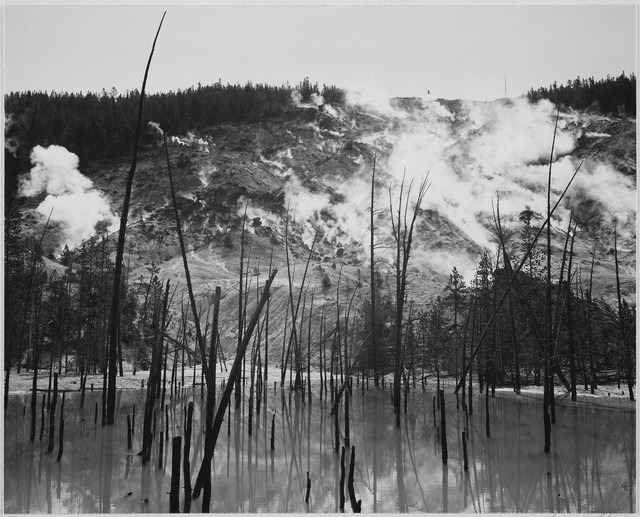 Artist: Ansel Adams - Title: Roaring Mountain, Yellowstone National Park - Medium: Fine Art Reproduction Giclee on Canvas - Image Size: Approximately 16 inches x 20 inches - Unframed on Unstretched Canvas - Biography: As a conservationist, writer, teacher, and photographer, Ansel Adams has been profoundly influential on future generations of artists, photographers, and environmentalists. There can be little doubt that he produced some of the most iconic images of the great American wilderness. Following in a long tradition of American landscape photographers, including Carleton Watkins, Eadweard Muybridge, Timothy O'Sullivan, and William Henry Jackson, Adams brought landscape photography into the realm of modernism by fusing technical precision with a profound and abiding love of the natural world. His work has inspired a range of artists and photographers working in the landscape tradition, from Eliot Porter and Robert Adams, to Edward Burtynsky and Richard Misrach. The subject of countless documentaries, books, essays, and exhibitions, Adams's images appear on living room and museum walls, proving that his photographs of the great American landscape continue to resonate.