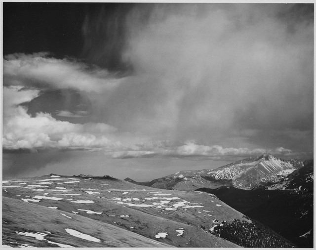 Artist: Ansel Adams - Title: Rocky Mountain National Park Colorado 5 - Medium: Fine Art Reproduction Giclee on Canvas - Image Size: Approximately 25.25 inches x 32 inches - Unframed on Unstretched Canvas - Biography: As a conservationist, writer, teacher, and photographer, Ansel Adams has been profoundly influential on future generations of artists, photographers, and environmentalists. There can be little doubt that he produced some of the most iconic images of the great American wilderness. Following in a long tradition of American landscape photographers, including Carleton Watkins, Eadweard Muybridge, Timothy O'Sullivan, and William Henry Jackson, Adams brought landscape photography into the realm of modernism by fusing technical precision with a profound and abiding love of the natural world. His work has inspired a range of artists and photographers working in the landscape tradition, from Eliot Porter and Robert Adams, to Edward Burtynsky and Richard Misrach. The subject of countless documentaries, books, essays, and exhibitions, Adams's images appear on living room and museum walls, proving that his photographs of the great American landscape continue to resonate.