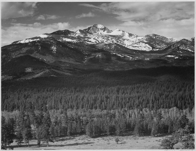 Artist: Ansel Adams - Title: Rocky Mountain National Park Colorado 8 - Medium: Fine Art Reproduction Giclee on Canvas - Image Size: Approximately 24.5 inches x 32 inches - Unframed on Unstretched Canvas - Biography: As a conservationist, writer, teacher, and photographer, Ansel Adams has been profoundly influential on future generations of artists, photographers, and environmentalists. There can be little doubt that he produced some of the most iconic images of the great American wilderness. Following in a long tradition of American landscape photographers, including Carleton Watkins, Eadweard Muybridge, Timothy O'Sullivan, and William Henry Jackson, Adams brought landscape photography into the realm of modernism by fusing technical precision with a profound and abiding love of the natural world. His work has inspired a range of artists and photographers working in the landscape tradition, from Eliot Porter and Robert Adams, to Edward Burtynsky and Richard Misrach. The subject of countless documentaries, books, essays, and exhibitions, Adams's images appear on living room and museum walls, proving that his photographs of the great American landscape continue to resonate.