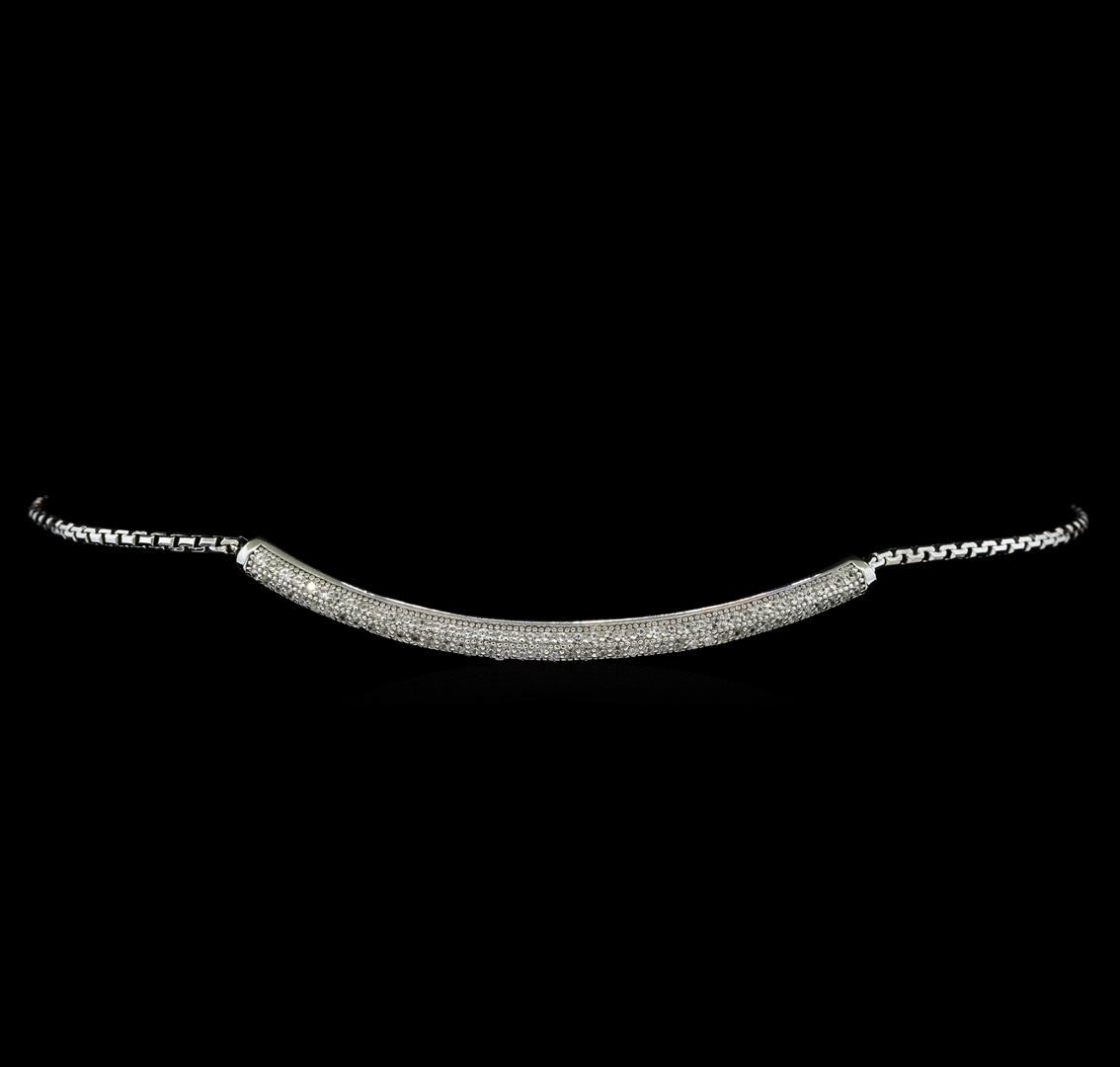 High end designer jewelry. Adjustable CZ Bracelet - 925 Silver. C Z& Silver925. Silver/ Clear. 9Inches. Total Weight: 5.8 grams.