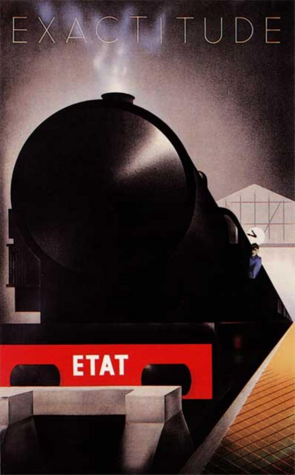 Artist: Adolphe Cassandre - Title: Exactitude Etat - Medium: Fine Art Reproduction Giclee on Canvas - Image Size: Approximately 20 inches x 12.5 inches - Unframed on Unstretched Canvas - Widely recognized with his nom de plume Cassandre, Adolphe Jean-Marie Mouron was an eminent twentieth century Ukrainian-French graphic designer, painter, typeface designer and commercial poster artist. He was highly inspired by surrealist and cubist movements.