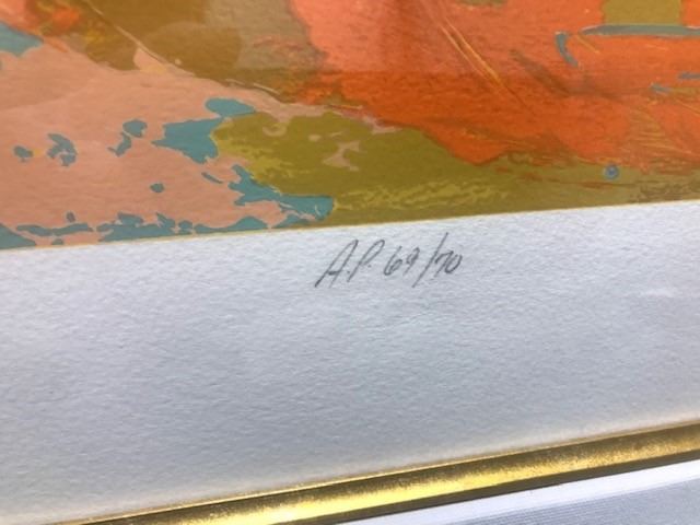 "Adriano World Champion Bull Rider" by LeRoy Neiman (1921-2012) Hand signed by LeRoy Neiman and the subject of this piece Adriano Morales - Limited Edition serigraph Artist Proof #69 of 70 - Framed size = 43" x 51"