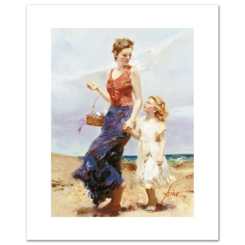 Pino's portraits allow glimpses into intensely personal, intimate spaces, conveying emotion through rich, warm color and sensual brushwork. "Affection" is a limited edition giclee on canvas that has been hand-embellished by Pino himself, AP numbered and hand signed by Pino (1939-2010). Includes Certificate of Authenticity! Measures approx. 12" x 16" (image).