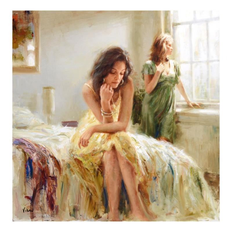 Afternoon Light by Vidan. "Afternoon Light" is a limited edition giclee on canvas by Vidan, nephew and protege of Pino (1939-2010). Numbered and hand signed by the artist. Includes Certificate of Authenticity. Measures approx. 30" x 30" (image).