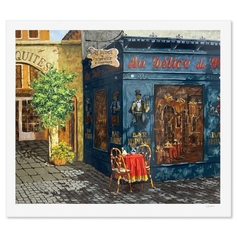"Afternoon Shadows" is a limited edition publisher's proof on paper by Viktor Shvaiko, numbered 1/3 and hand signed by the artist. Includes Letter of Authenticity. Measures approx. 38.5" x 44" (border), 34" x 40" (image). There are minor creases in the white border area of the paper (top-left edge).