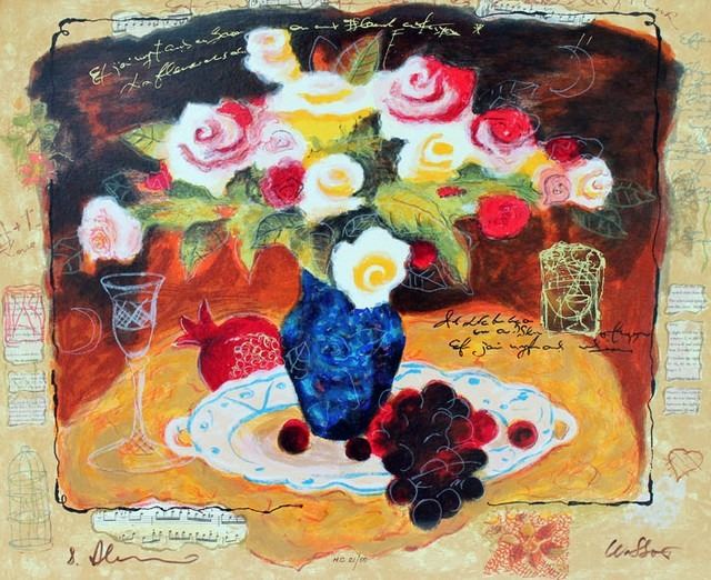 Artist: Alexander & Wissotzky - Title: Yellow Bouquet - Medium: Serigraph on Paper - Signature: Hand-signed by the Artist - Limited Edition: HC 50 - Image Size: Approximately 17 inches x 20.5 inches - Unframed - Details: This work comes with a Certificate of Authenticity - The work of Alexander and Wissotzky has received critical acclaim and success in both Israel and abroad and can be found in public and private collections all over the world. Sadly, Tanya Wissotzky lost her battle with cancer in November of 2006.Alexander Galtchansky has also passed away just a few years later.